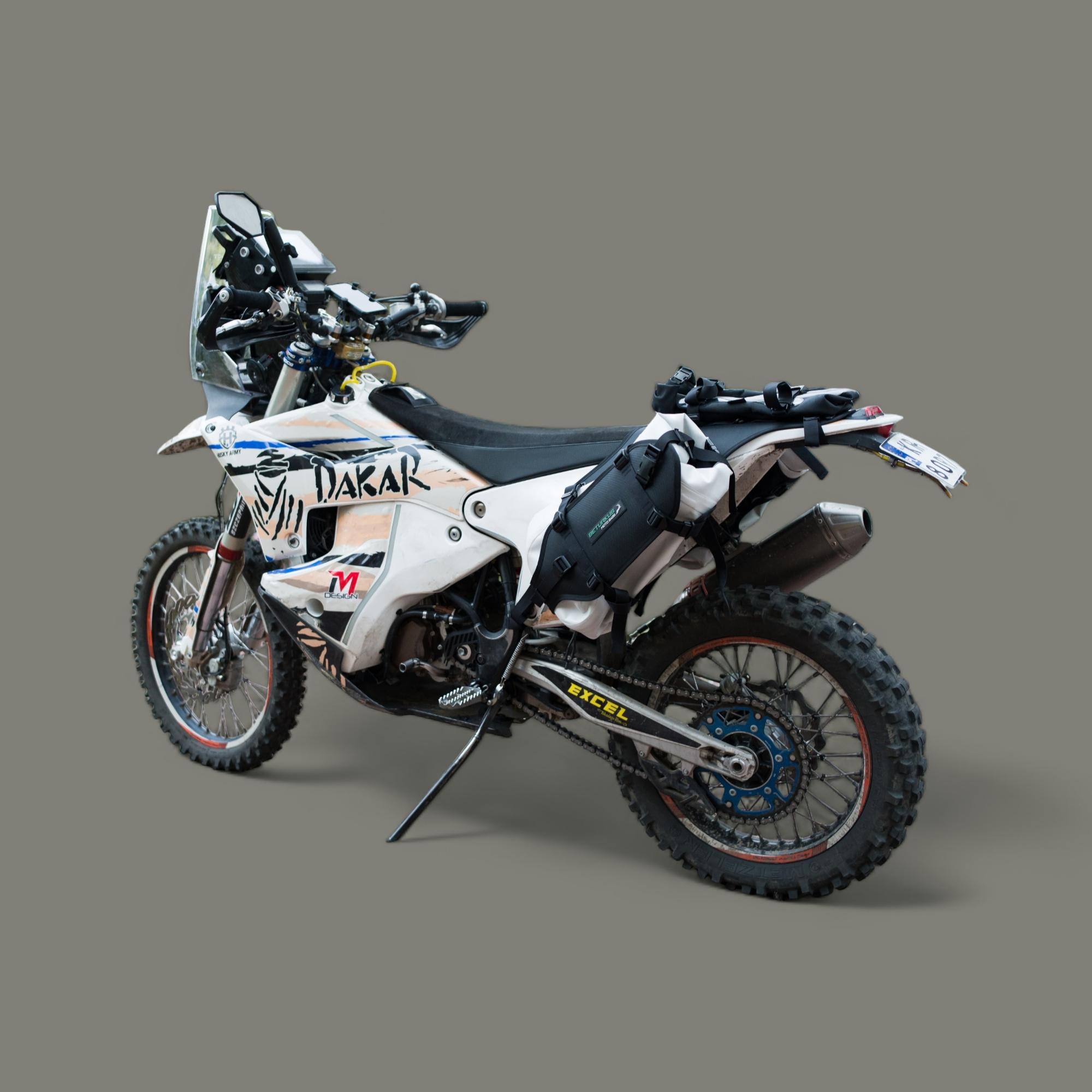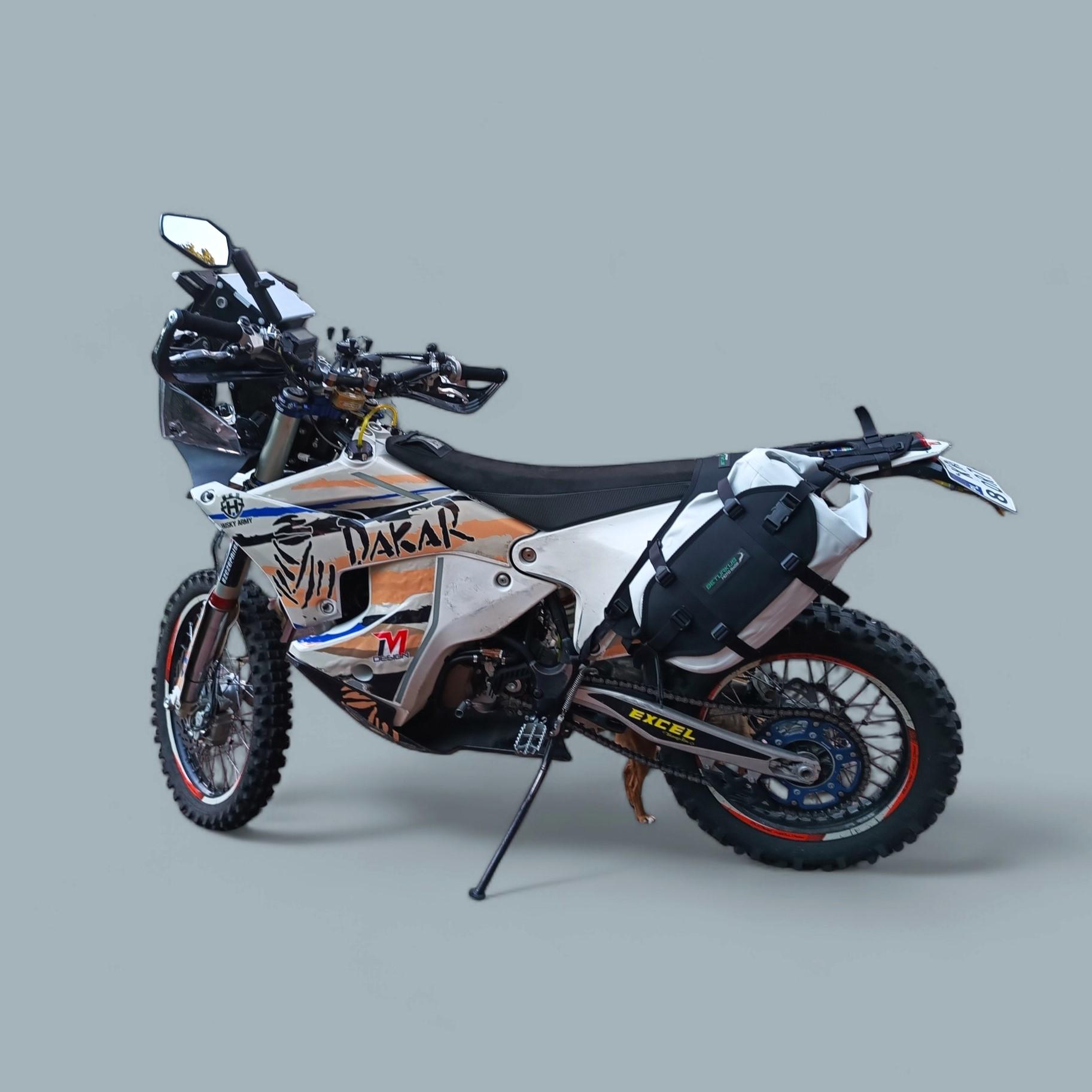 W skład zestawu podstawowego wchodzi siodło oraz dwie torby klejone o łącznej pojemności 26L lub 36L
